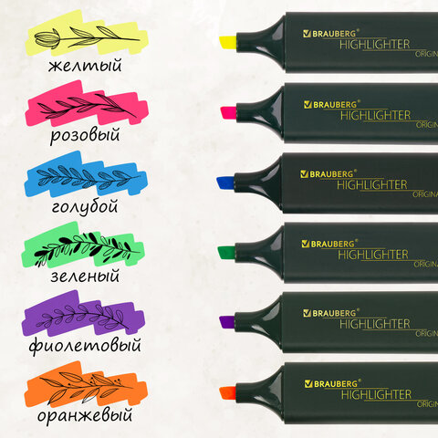 Текстовыделители BRAUBERG "ORIGINAL" предназначены для выделения текста на бумаге любого типа, включая факс-бумагу.