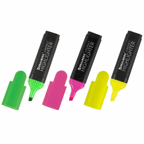 Набор текстовыделителей BRAUBERG 3 шт., АССОРТИ, "Contract", линия 1-5 мм, 150395