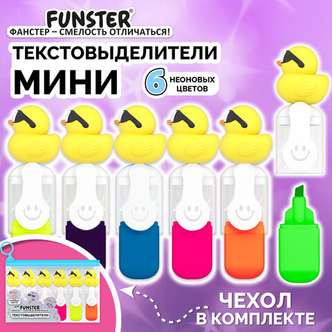 Набор текстовыделителей с топперами 6 ЦВЕТОВ НЕОН, "КРУТЫЕ УТЯТА", линия 1-4 мм, FUNSTER (ФАНСТЕР), 152647