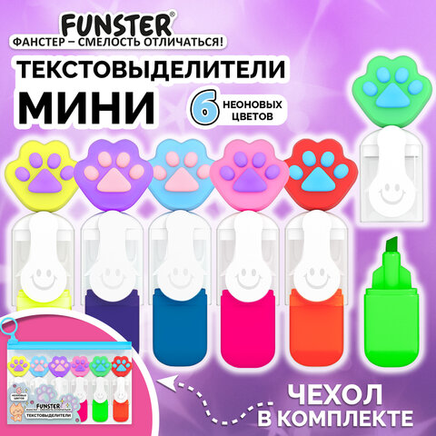 Набор текстовыделителей с топперами 6 ЦВЕТОВ НЕОН, "ЛАПКИ", линия 1-4 мм, FUNSTER (ФАНСТЕР), 152645