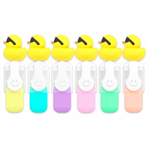 Набор текстовыделителей с топперами 6 ЦВЕТОВ ПАСТЕЛЬ, "КРУТЫЕ УТЯТА", линия 1-4 мм, FUNSTER (ФАНСТЕР), 152652