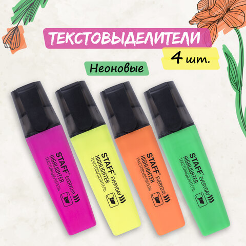 Набор текстовыделителей STAFF "EVERYDAY" HL-638, 4 шт., АССОРТИ, линия 1-5 мм, 151643