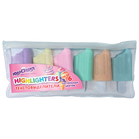 Набор текстовыделителей 6 ПАСТЕЛЬНЫХ ЦВЕТОВ, ЮНЛАНДИЯ "СЛАДКИЕ ИСТОРИИ", линия 1-5 мм, 152511