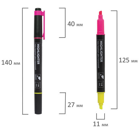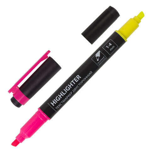 Текстовыделитель двусторонний BRAUBERG, ЖЕЛТЫЙ/РОЗОВЫЙ, линия 1-4 мм, 150840