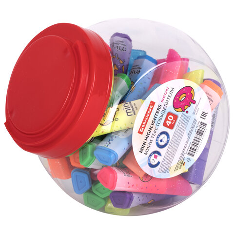 Текстовыделитель мини с принтами BRAUBERG "NEON", АССОРТИ В ПЛАСТИКОВОЙ БАНКЕ, 1-5 мм, 152535