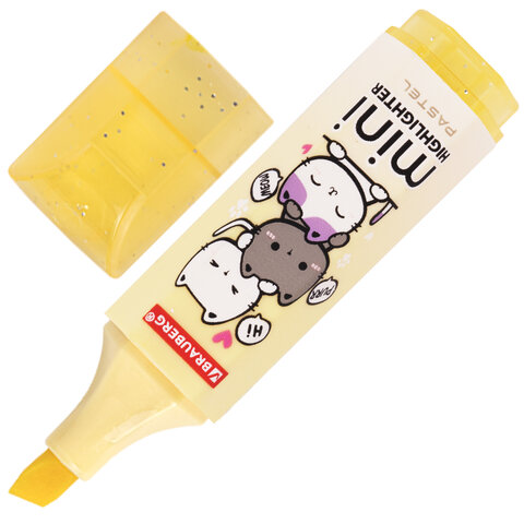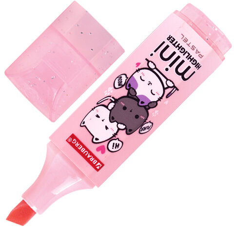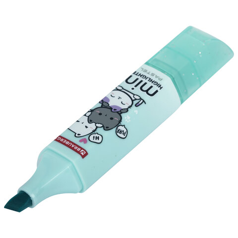 Текстовыделитель мини с принтами BRAUBERG "PASTEL", АССОРТИ В ПЛАСТИКОВОЙ БАНКЕ, 1-5 мм, 152536