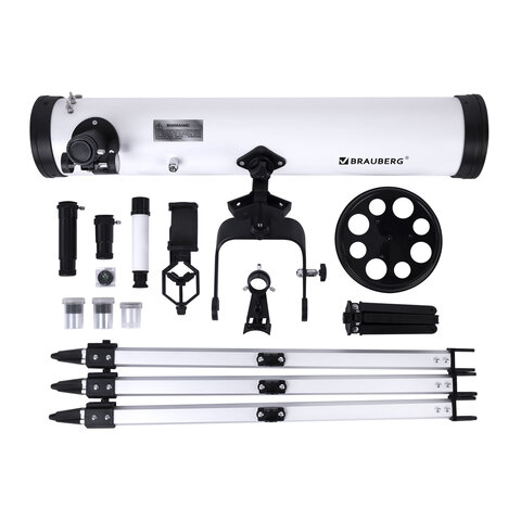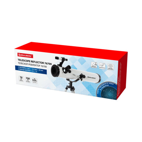 Телескоп рефлектор астрономический, увеличение 525х, объектив 76 мм, фокусное расстояние 700 мм, видоискатель, BRAUBERG 76700, 391398