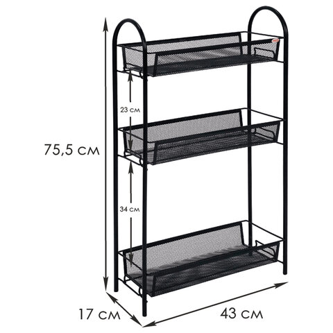 Этажерка "Ладья-13" офисно-бытовая 3 яруса, металл, черная, 43х17х75,5 см, Э 399 Ч