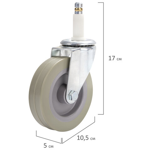 Колеса для уборочной тележки с штоком без резьбы, диаметр 99 мм, КОМПЛЕКТ 4 штуки, BRABIX, 605381