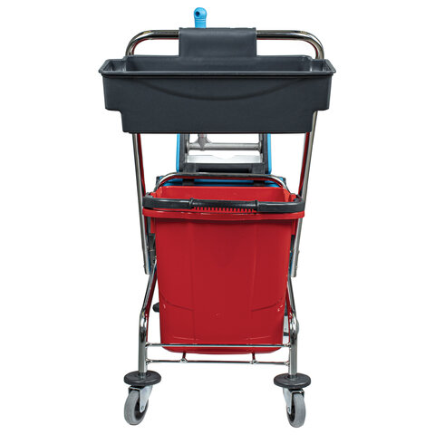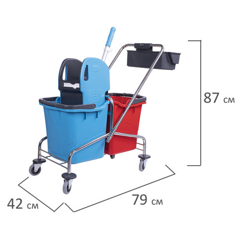 Тележка уборочная, 2 съемных ведра по 25 л, механический отжим, корзина, BRABIX, Турция, 607903