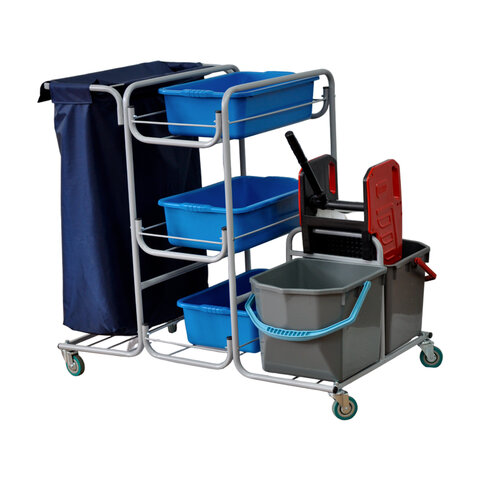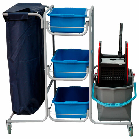 Тележка уборочная Eco-Force МНОГОФУНКЦИОНАЛЬНАЯ MEGA 2 ведра по 25 л, отжим, 3 поддона, держатель и основание для мешка, мешок, 26EF/1, 26EF/1 б/в