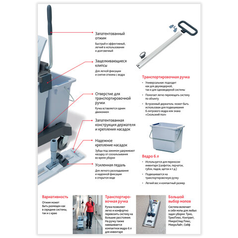 Двухведерная система "УльтраСпидПро" подходит для всех видов клининговых задач. Оснащена легким в использовании отжимом, встроенным держателем ручки и удобной для перемещения платформой на колесах.