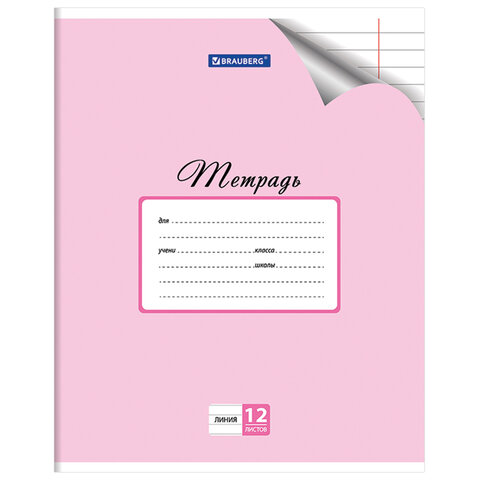 Тетрадь 12 л. BRAUBERG "ЭКО", линия, обложка картон 170 г/м2, ПАСТЕЛЬНАЯ С УГОЛКОМ, 104507
