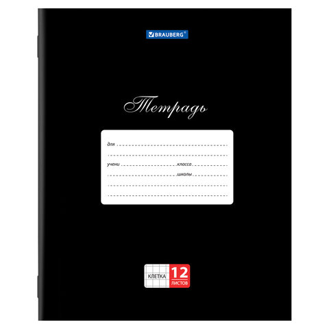 Тетрадь 12 л. BRAUBERG КЛАССИКА, клетка, обложка картон, ЧЕРНАЯ, 106648