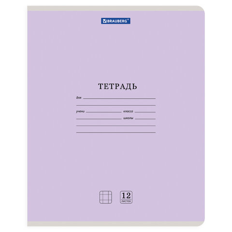 Тетрадь 12 л. BRAUBERG "КЛАССИКА NEW", клетка, обложка картон, АССОРТИ (5 видов), 105682