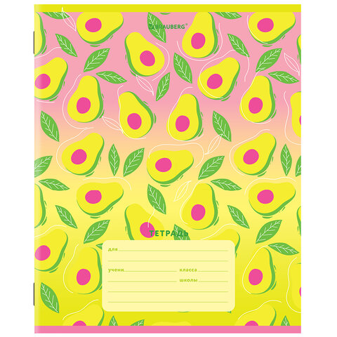Тетрадь 12 л. BRAUBERG, клетка, обложка картон, "АВОКАДИКИ", 106461