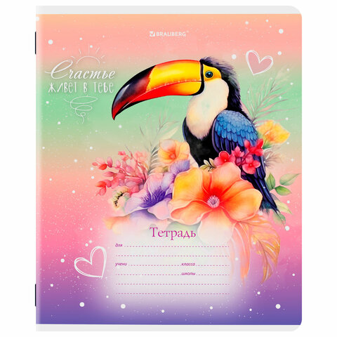 Школьная тетрадь BRAUBERG с ярким дизайном подходит для всех видов пишущих принадлежностей, включая гелевые, капиллярные и перьевые ручки: написанное на одной стороне не просвечивается на другой.