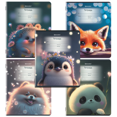 Тетрадь 12 л. BRAUBERG, косая линия, обложка картон, ЗВЕРУШКИ, 107289