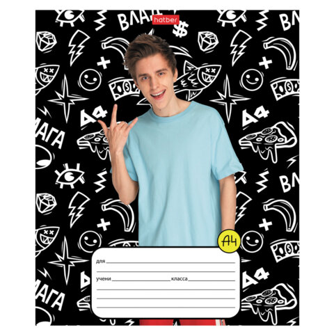 Тетрадь 12 л., HATBER клетка, обложка картон, "Влад А4" (микс в спайке), 073122, 12Т5В1