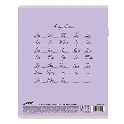 Тетрадь 12 л. ЮНЛАНДИЯ КЛАССИЧЕСКАЯ, частая косая линия, обложка картон, АССОРТИ 5 видов, 105650