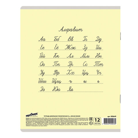 Тетрадь 12 л. ЮНЛАНДИЯ КЛАССИЧЕСКАЯ, косая линия, обложка картон, АССОРТИ 5 видов.105649