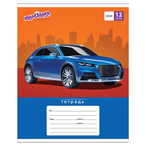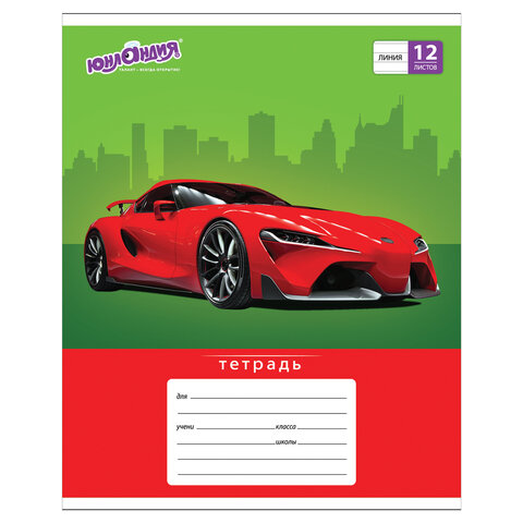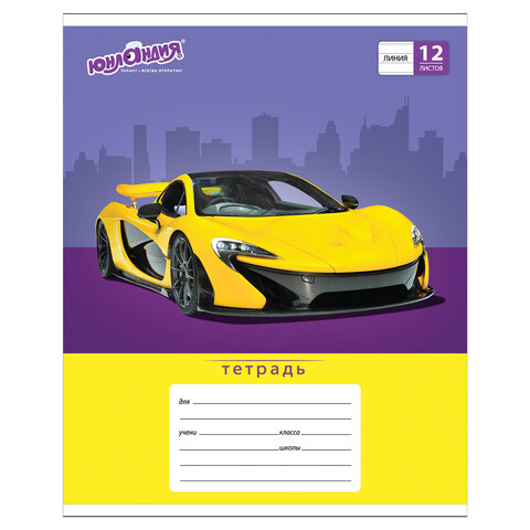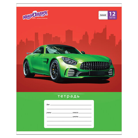 Тетрадь 12 л. ЮНЛАНДИЯ линия, обложка картон, "АВТО-КЛАСС", 105634