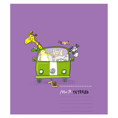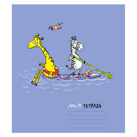 Тетрадь 12 л., ПЗБМ клетка, выборочный лак, брайль, "Трое в лодке, не считая жирафа" (5 видов), 15960