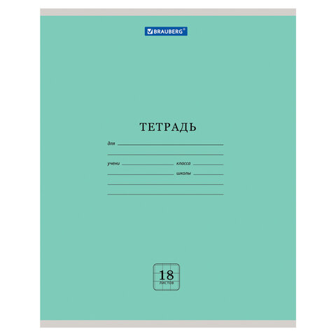 Тетрадь 18 л. BRAUBERG "ЭКО", клетка, обложка картон 170 г/м2, ЗЕЛЕНАЯ ПАСТЕЛЬНАЯ, 105675