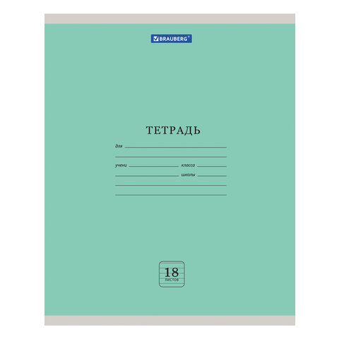 Тетрадь 18 л. BRAUBERG "ЭКО", линия, обложка картон 170 г/м2, ЗЕЛЕНАЯ ПАСТЕЛЬНАЯ, 105677