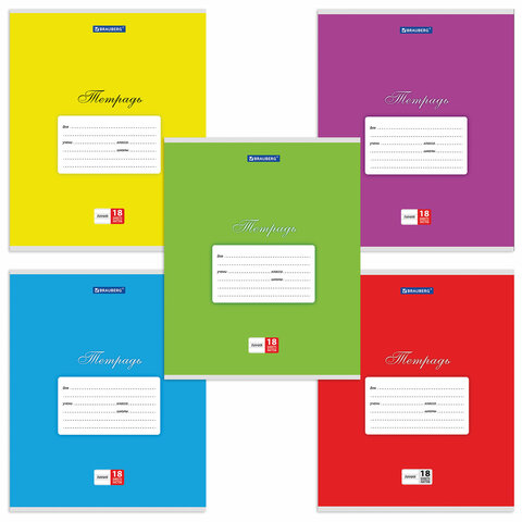 Тетрадь 18 л. BRAUBERG КЛАССИКА, линия, обложка картон, АССОРТИ (5 видов), 401992