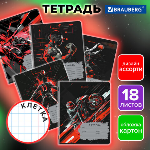 Тетрадь 18 л. BRAUBERG, клетка, обложка картон, MEN'S SPORT, 107294