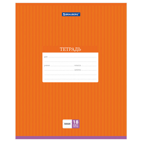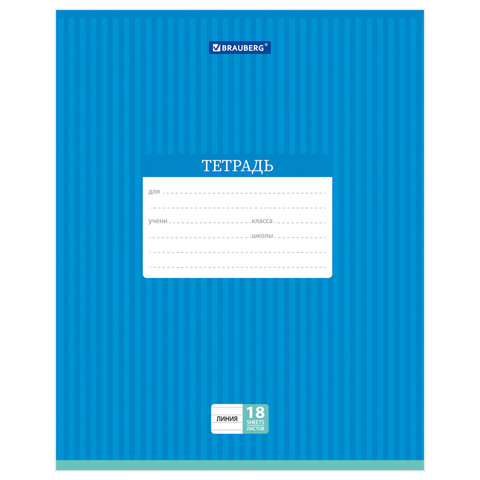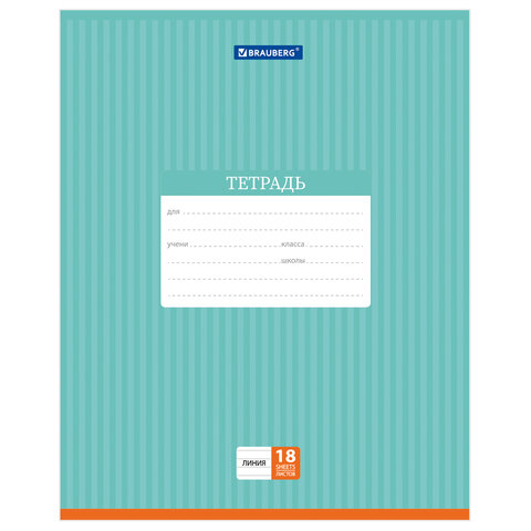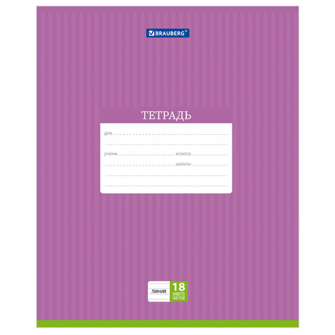 Тетрадь 18 л. BRAUBERG, линия, обложка картон, ПОЛОСКИ ОДНОТОННЫЕ, 401860