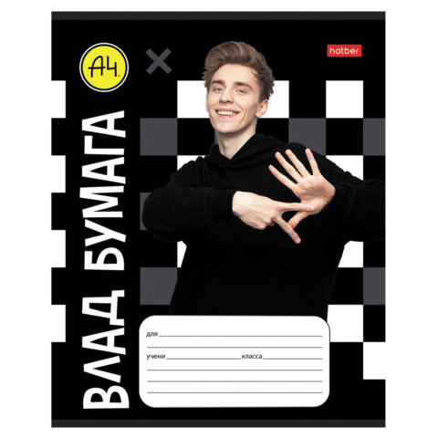 Тетрадь 18 л., HATBER клетка, обложка картон, "Влад А4" (микс в спайке), 082404, 18Т5В1