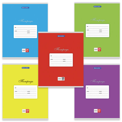 Тетрадь 24 л. BRAUBERG КЛАССИКА, клетка, обложка картон, АССОРТИ (5 видов), 401993