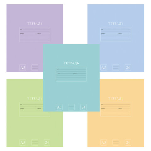 Тетрадь 24 л., HATBER-ECO линия, офсет №2 ЭКОНОМ, обложка картон, PUREcolour (микс в спайке), 092113, 24Т5C2