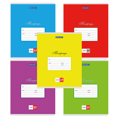 Тетрадь 24 л. BRAUBERG КЛАССИКА, линия, обложка картон, АССОРТИ (5 видов), 107786