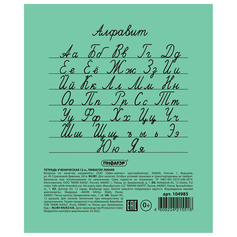 Тетрадь ПИФАГОР с классической зеленой обложкой подойдет для занятий школьнику преимущественно начальных и средних классов. На обороте представлена дополнительная информация.