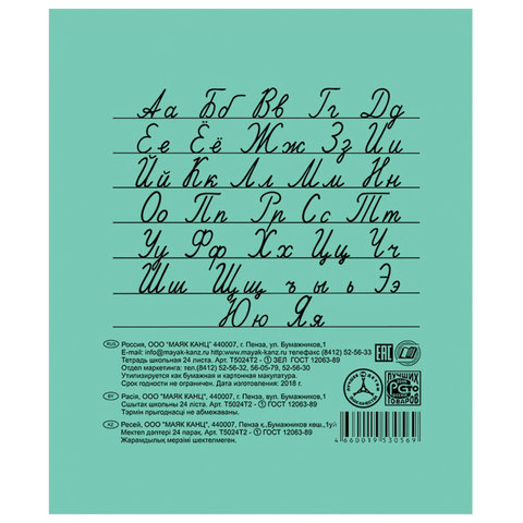 Тетрадь "Маяк" с зеленой обложкой изготовлена в соответствии с ГОСТ 12063-89. Предназначена для дошкольников и учащихся начальных и средних классов.