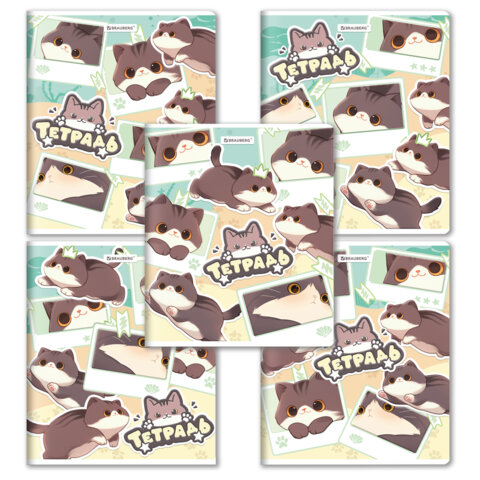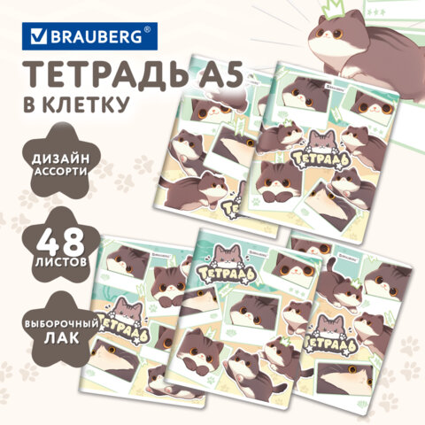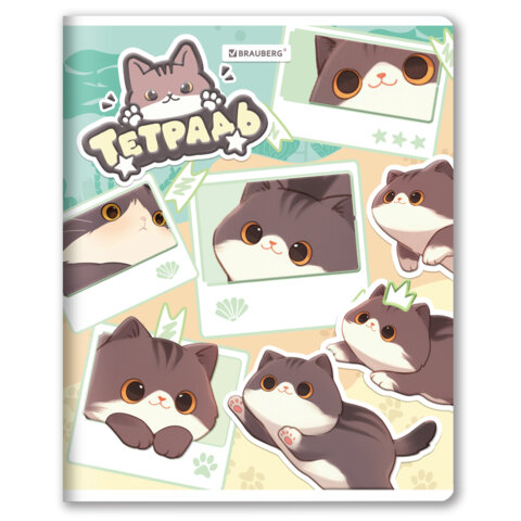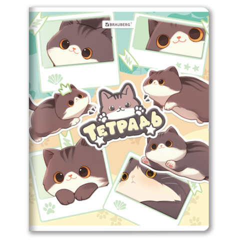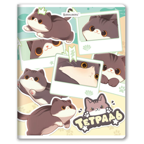 Тетрадь А5 48 л. BRAUBERG скоба, клетка, выборочный лак, кросс-серия МИЛЫЕ КОТЫ, 405193