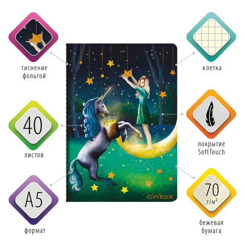Тетрадь 40 л. в клетку обложка SoftTouch, фольга, бежевая бум. 70 г/м2, сшивка, А5 (147х210 мм), FAIRY TALE, BRAUBERG, 403788