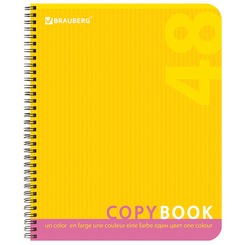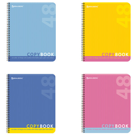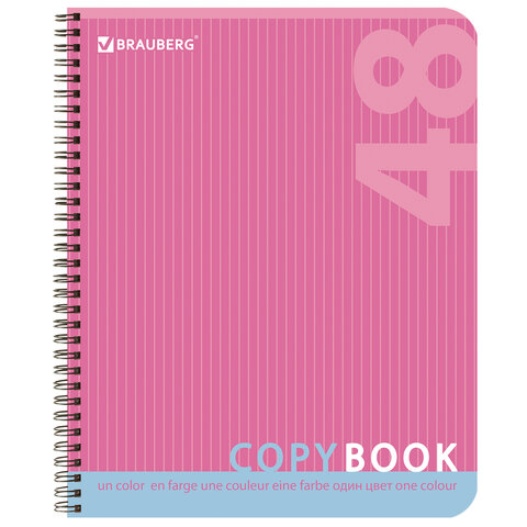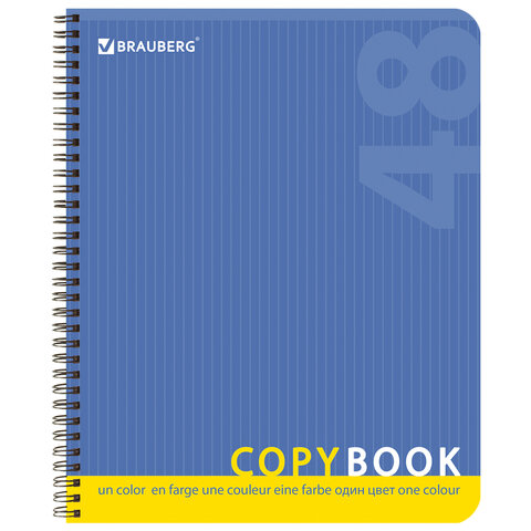 Тетрадь А5, 48 л., BRAUBERG, гребень, клетка, обложка картон, ОДНОТОННАЯ, 401871