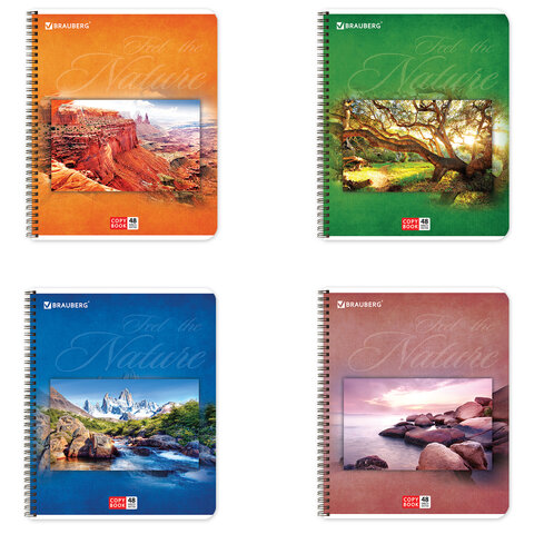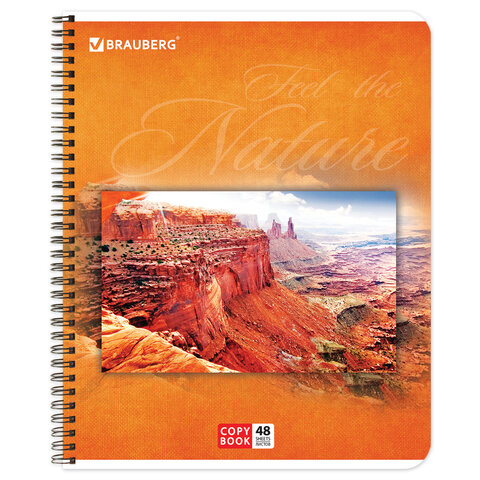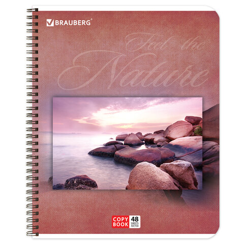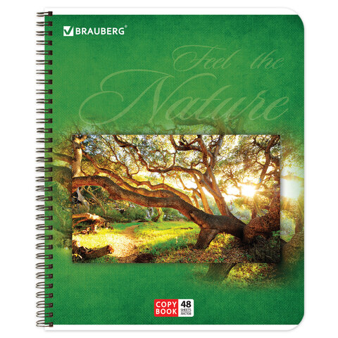 Тетрадь А5, 48 л., BRAUBERG, гребень, клетка, обложка картон, ПРИРОДА, 401874
