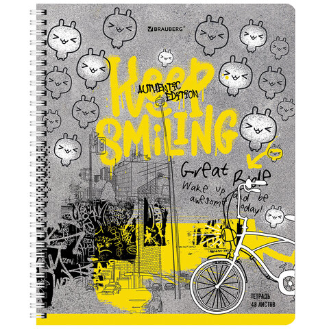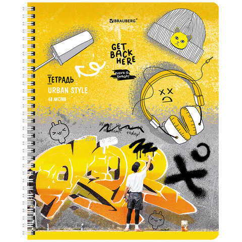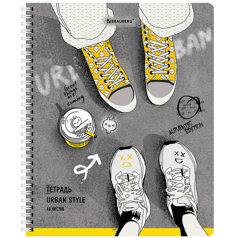 Тетрадь А5 48 л. BRAUBERG гребень, клетка, обложка картон, "Urban Style" (4 вида в спайке), 404338
