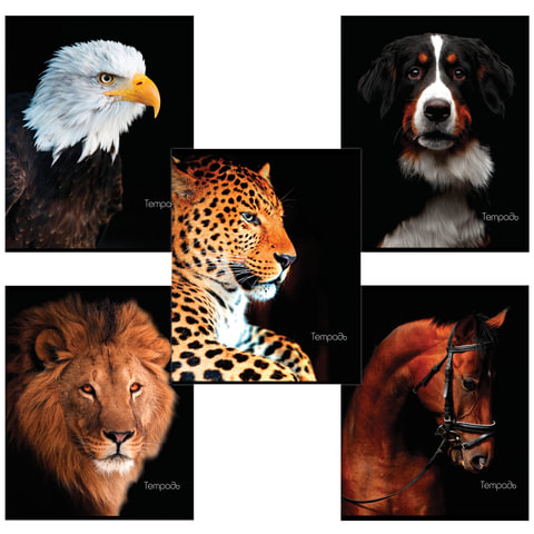 Тетрадь А5, 48 л., BRAUBERG скоба, клетка, обложка картон, ЖИВОТНЫЕ, 403034