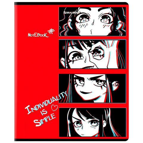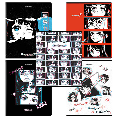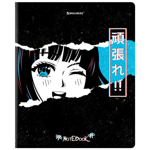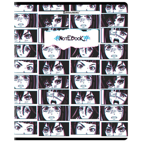 Тетрадь А5, 48 л., BRAUBERG, скоба, клетка, глянцевый лак, "Аниме" (микс в спайке), 404347