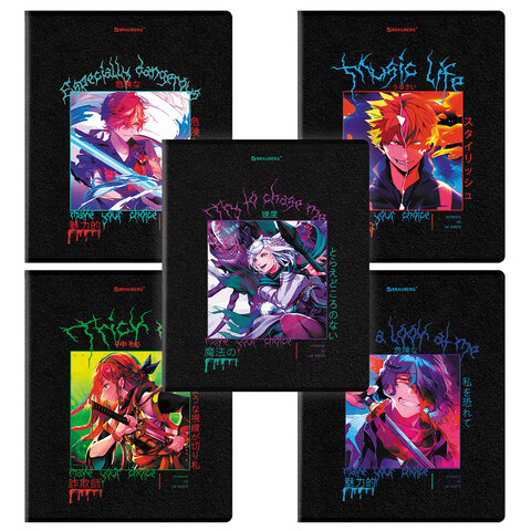 Тетрадь А5, 48 л. BRAUBERG, скоба, клетка, глянцевый лак, "Anime" (микс в спайке), 404348