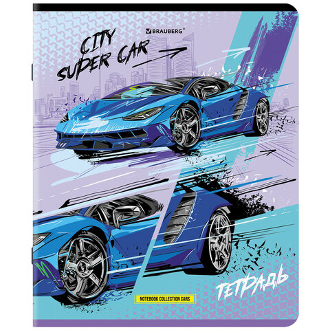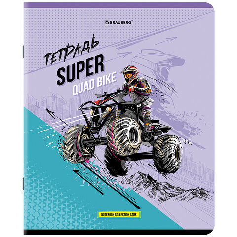 Тетрадь А5, 48 л., BRAUBERG, скоба, клетка, глянцевый лак, "Race" (микс в спайке), 404349