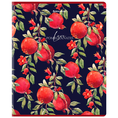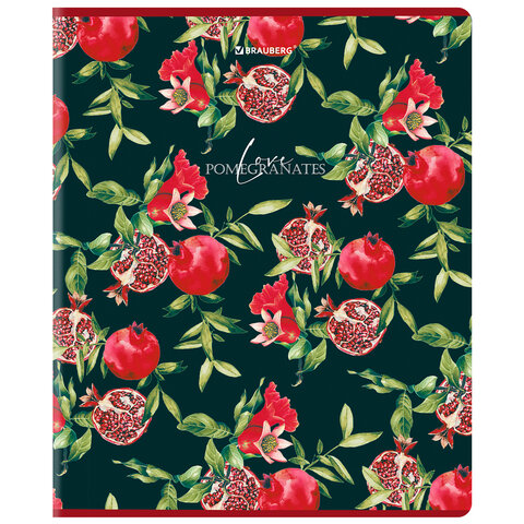 Тетрадь А5, 48 л., BRAUBERG, скоба, клетка, матовая ламинация, выборочный лак, "Гранаты" (микс в спайке), 404376