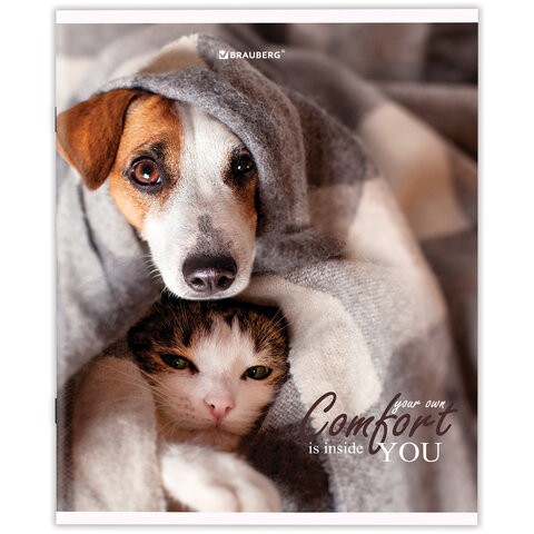 Тетрадь А5 48 л. BRAUBERG скоба, линия, обложка картон, "Питомцы" (микс в спайке), 404386