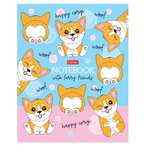 Тетрадь А5 48 л., HATBER скоба, клетка, матовая ламинация, "Пушистые хвостики" (микс в спайке), 079183, 48Т5лВ1